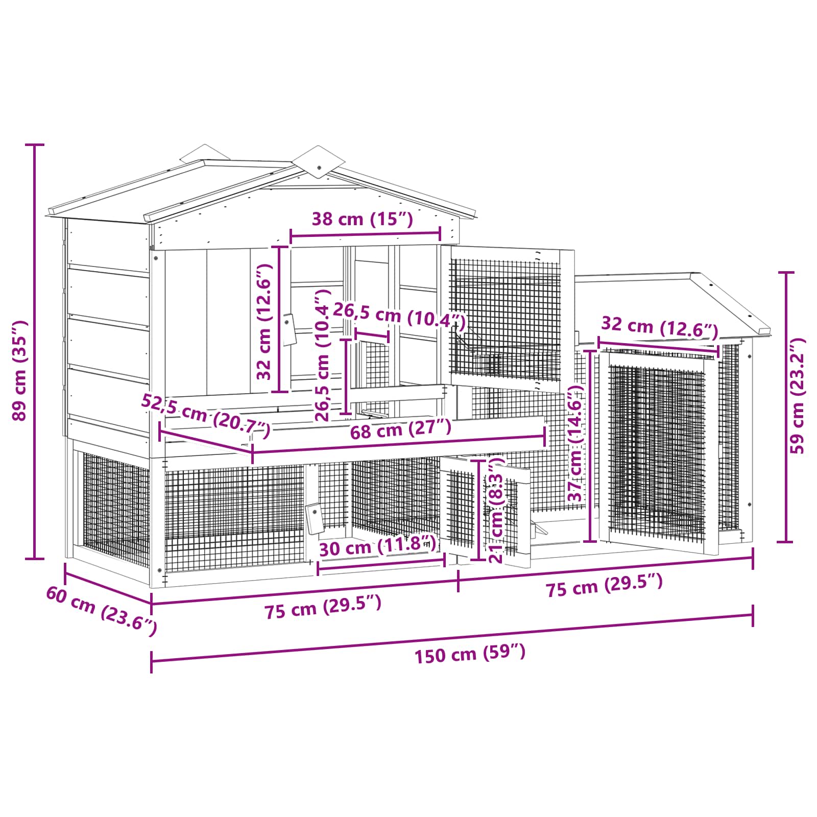 - 1 x Hühnerstall: 75 x 60 x 89 cm