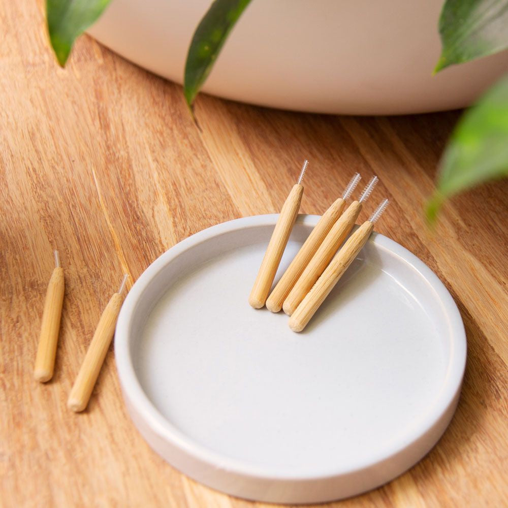 HYDROPHIL Interdentalbürsten 0,40 mm, ISO 0, BPA frei Nachhaltige Interdentalbürsten aus Bambus – Verschiedene Grössen: Size 0 - sehr klein – 0,40 mm // Size 1 - klein – 0,45 mm // Size 2 - mittel – 0,50 mm // Size 3 - groß – 0,60 mm – Einzeln oder als 4er Pack erhältlich Unsere Interdentalbürsten mit plastikfreiem Bambusgriff sind Deine umweltfreundliche Ergänzung bei der täglichen Zahnpflege. So kannst Du selbst schwer erreichbare Zahnzwischenräume reinigen. Du hast die Auswahl aus vier ISO-Norm-Größen. Größe 0 hat mit 0,40 mm die kleinste Bürste. Benutzt Du die Interdentalbürsten zusammen mit unserer Bambuszahnbürste, schützt Du gleichzeitig Zähne, Zahnfleisch und die Umwelt. Wie alle unsere Produkte sind auch unsere Zahnzwischenraumbürsten selbstverständlich wasserneutral, vegan & fair. Anwendung Schiebe die Zahnzwischenraumbürste vorsichtig in den Spalt zwischen zwei Zähnen. Bewege die Bürste einige Male horizontal hin und her. Versuche die Bürste auch schräg, in der sogenannten „X-Technik“ an den Zähnen entlang zu führen. Gehe behutsam vor. Benutze die Interdentalbürsten immer ohne Zahncreme und am besten einmal täglich vor dem Zähneputzen. Reinige die Bürste unter fließendem Wasser. Nach 7 bis 14 Tagen solltest Du die Interdentalbürste austauschen. Entsorgung Die Interdentalbürsten von HYDROPHIL gehören nach der Anwendung in den Restmüll. Aus hygienischen Gründen darf auch der Bambusgriff leider im Moment noch nicht in den Biomüll. Material Griff: 100 % Bambus Bürste: Metalldraht und BPA-freies Nylon