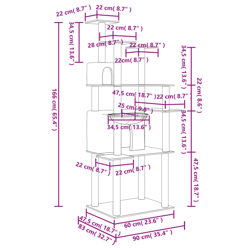 Kratzbaum mit Sisal-Kratzsäulen Hellgrau 166 cm