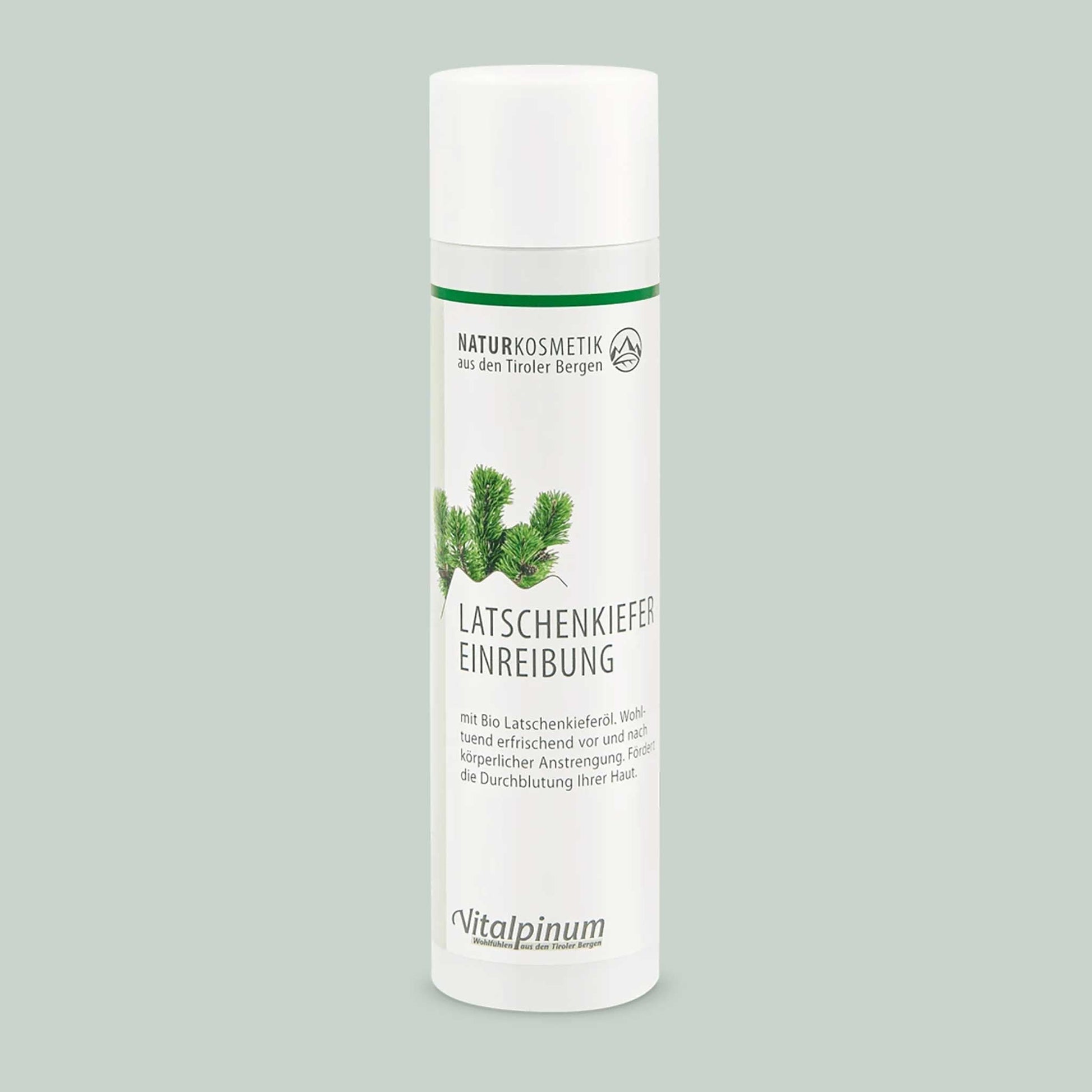 Die Latschenkiefer Einreibung von Unterweger – Die Marke der Natur ist ein bewährtes Hausmittel in moderner, zertifizierter Naturkosmetik-Qualität. Mit echtem ätherischem Latschenkieferöl (Pinus mugo) unterstützt sie die Durchblutung, erfrischt und hilft bei Muskelverspannungen und körperlicher Erschöpfung.