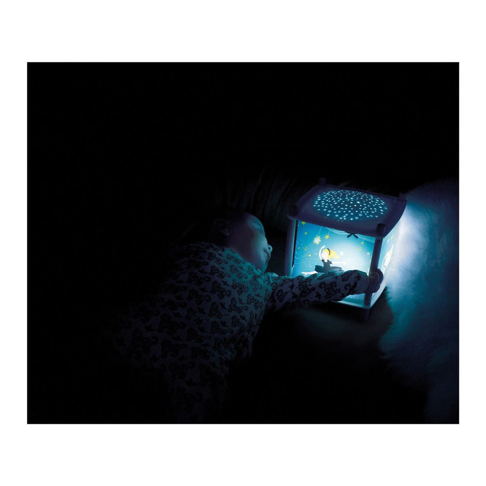 Moderne Interpretation der Magischen Laterne! Nach der Aktivierung ermöglicht diese Funktion, Sterne an die Kinderzimmerdecke zu projizieren. Ideal, um dem Kinderzimmer eine Sternennacht-Atmosphäre zu verleihen. Sie können bis zu 4 vorinstallierte Schlaflieder auswählen. Sie können auch eigene Musik oder andere Sprachdateien kabellos über Ihr Smartphone oder Tablet streamen. Schreidetektor: Das Nachtlicht erkennt das Schreien Ihres Kindes und schaltet sich automatisch wieder ein, um es zu beruhigen. Während das Kind weiterschläft, schont das Nachtlicht seinen Akku! Dieses Nachtlicht verfügt über einen Akku mit einer Ladekapazität, die eine Laufzeit von 5 Tagen mit jeweils 30 Minuten Gebrauch pro Tag ermöglicht.