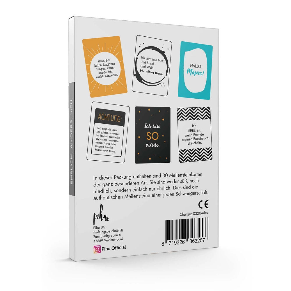 Simon Jan Meilensteinkarten Schwangerschaft In dieser Packung enthalten sind 30 Meilensteinkarten der ganz besonderen Art. Sie sind weder süss, noch niedlich, sondern einfach nur ehrlich. Dies sind die authentischen Meilensteine einer jeden Schwangerschaft.