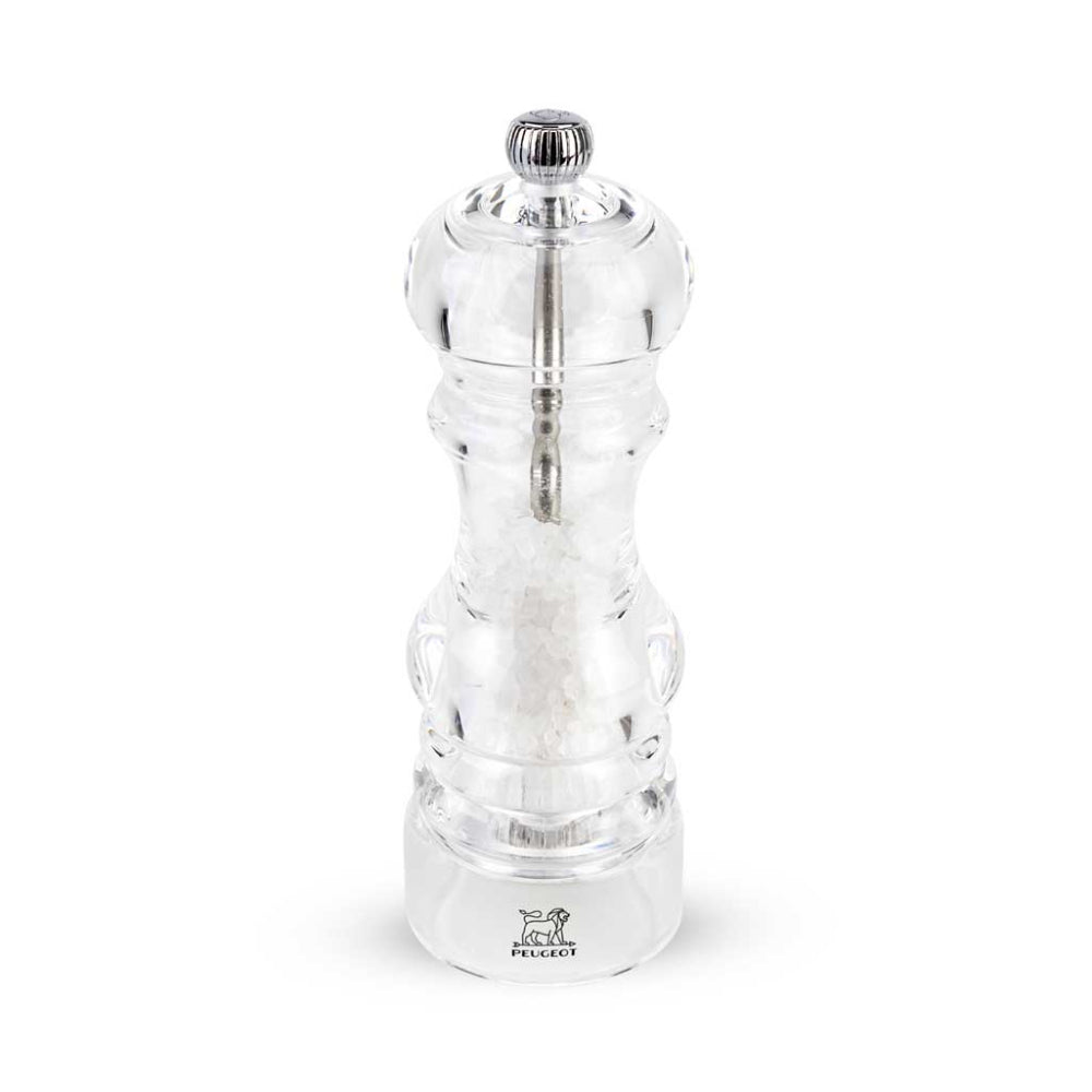 Peugeot Nancy Salzmühle, acrylic, 18 cm Die NANCY Salzmühle gehört zu unserer klassischen, zeitlosen Linie. Es handelt sich um eine manuelle Salzmühle, mit einem Drehknopf oben auf der Mühle umd den Mahlgrad zu verstellen. Der transparente Korpus ermöglicht das schnelle Erkennen des Inhaltes und der Füllmenge.