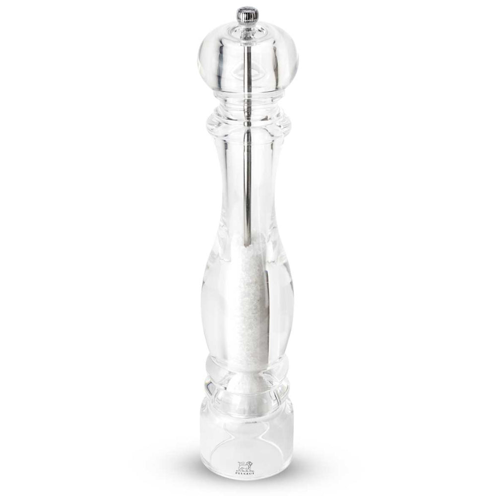 Peugeot Nancy Salzmühle, acrylic, 38 cm Die NANCY Salzmühle gehört zu unserer klassischen, zeitlosen Linie. Es handelt sich um eine manuelle Salzmühle, mit einem Drehknopf oben auf der Mühle umd den Mahlgrad zu verstellen. Der transparente Korpus ermöglicht das schnelle Erkennen des Inhaltes und der Füllmenge.
