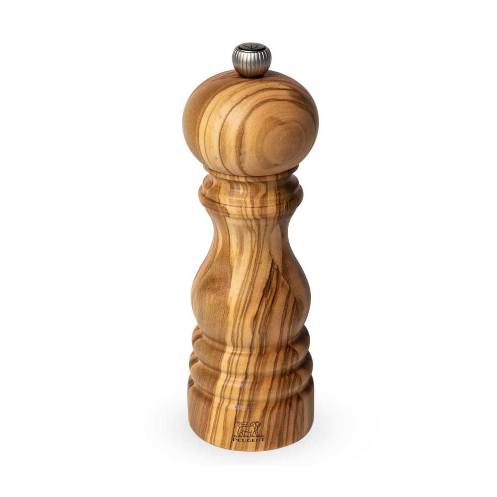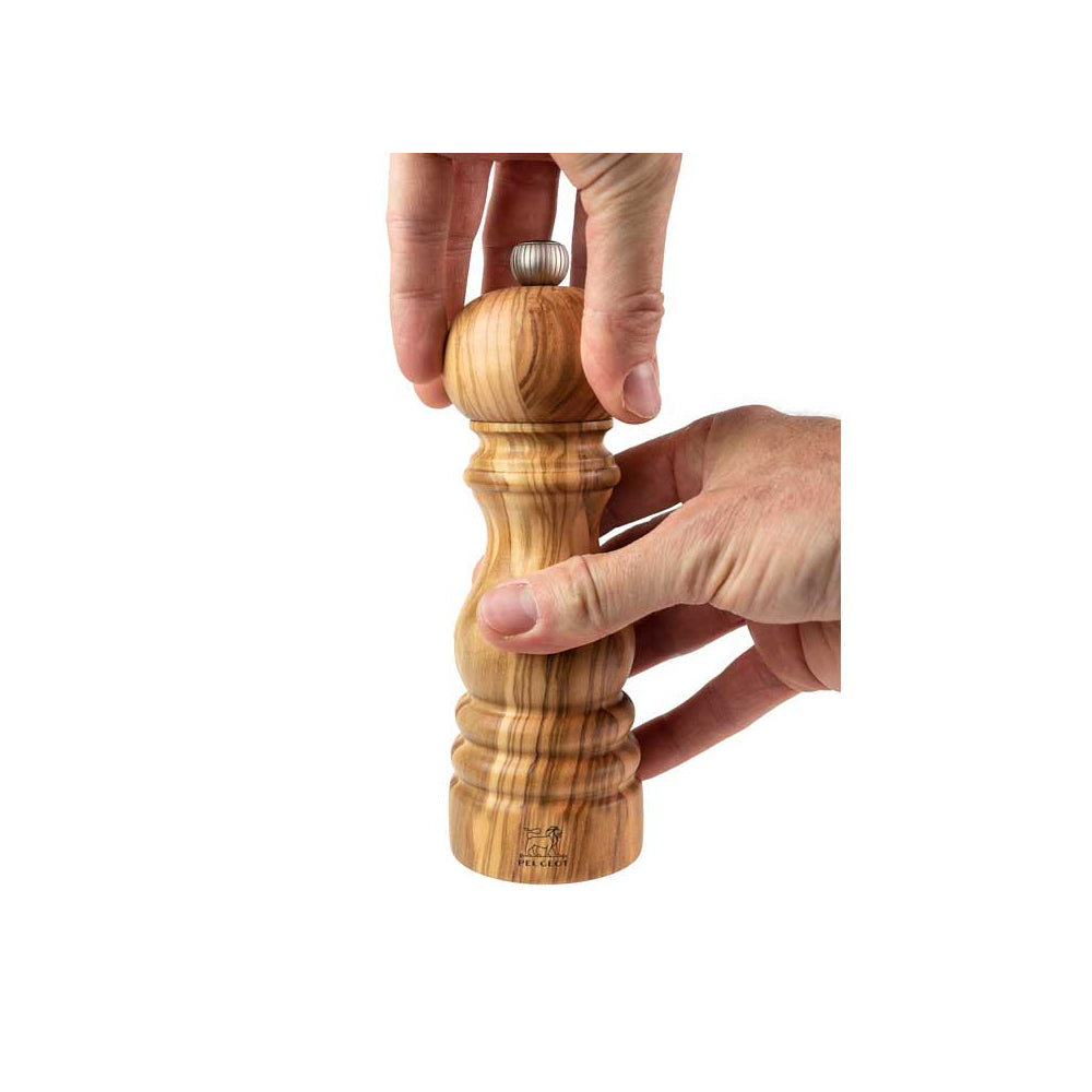 Peugeot Paris Pfeffermühle, natural, 18 cm Die natürlich kontrastreiche Maserung des Olivenholzes macht diese 18 cm grosse Pfeffermühle Paris zu einem einzigartigen Modell. Das Olivenholz stammt aus europäischen Wäldern, die nachhaltig bewirtschaftet werden. Die 18 cm grosse Pfeffermühle, Made in France, ist für eine lange Lebensdauer ausgelegt und in der Küche ebenso wie auf dem Tisch zuhause. Ihr exklusives, in unseren Werkstätten im französischen Doubs hergestelltes Mahlwerk wurde speziell für Pfeffer so konzipiert, dass die Aromen von schwarzem, weißem, grünem oder rotem Pfeffer sowie von Koriandersamen und rosa Beeren (Anteil an einer Pfeffermischung bis 15 %) perfekt zur Geltung kommen. Der glänzende Metallknopf ermöglicht die Einstellung der Pfeffermühle mit einem einfachen Handgriff: Je stärker er angezogen wird, desto feiner das Salz und umgekehrt.