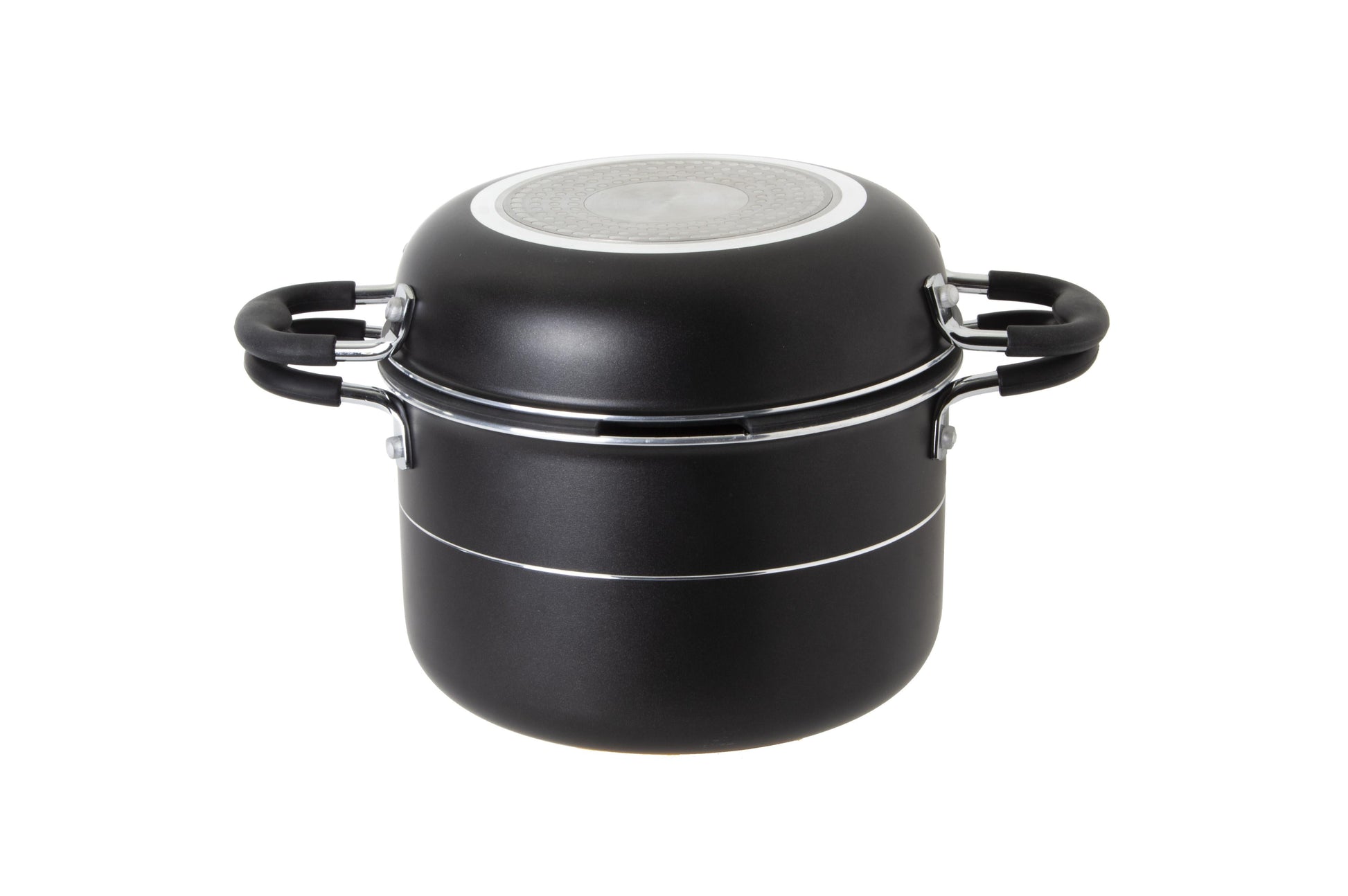 | Inhalt | 1 Topf ø 22 cm - 5,3 l, 1 Pfanne ø 22 cm - 2 l, 1 Pfanne ø 20 cm -1,7 l, 1 Topf ø 18 cm - 1 l, 1 Deckel ø 22 cm, 1 Deckel ø 22/20/18 cm, 1 Griffzange und 1 Gurt |