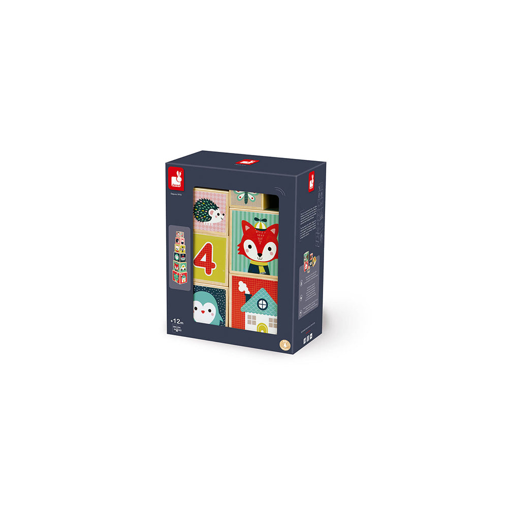 Janod Pyramide mit 6 Würfeln - Baby Wald Grösse 12 x 12 x 54 cm