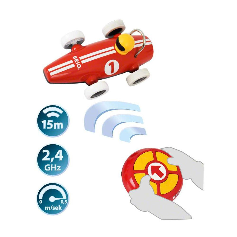 Brumm, brumm! Mit seinem leuchtend roten Fahrwerk und seinem windschnittigen Aussehen bietet der BRIO Rennwagen mit Fernsteuerung den Kindern viele Stunden rasanten Rennfahrspaß. Dieser Rennwagen mit seiner intuitiven Fernsteuerung ist ein perfektes Spielzeug für Zweijährige, die nach einigen Übungsrunden im Zimmer schnell die Steuerung übernehmen werden. Das Spielzeug fördert ihre Geschicklichkeit und ihr Kontrollvermögen auf witzige, unvergessliche Weise.