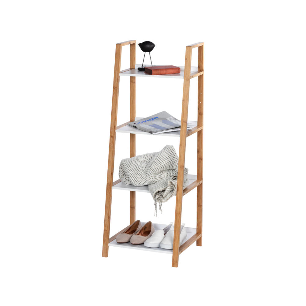 Wenko Regal Finja 4 Etagen, braun/weiss Modernes Standregal mit 4 Böden. Praktisch und vielseitig einsetzbar. Material: Bambus/MDF. 43x36x112 cm