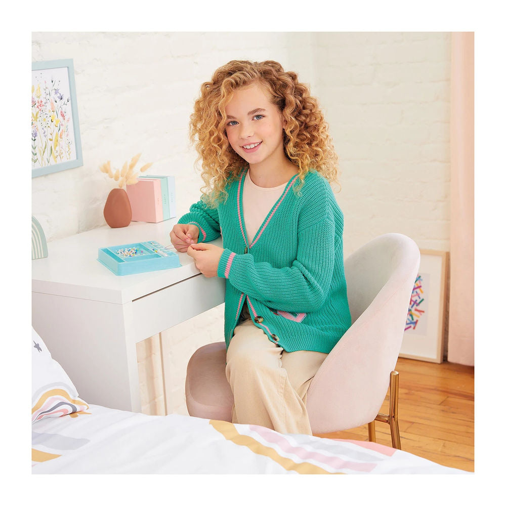Set zum Herstellen von Regenbogen Schmuck Armbändern. Inhalt: 1 transparente elastische Schnur (1,5 m),2 Nylonschnüre (0,6 m), 20 silberfarbene Perlen,60 Schmuckperlen, 76 bunte Perlen, 3 Anhänger,1 Anleitungsblatt, 1 Basteltablett.