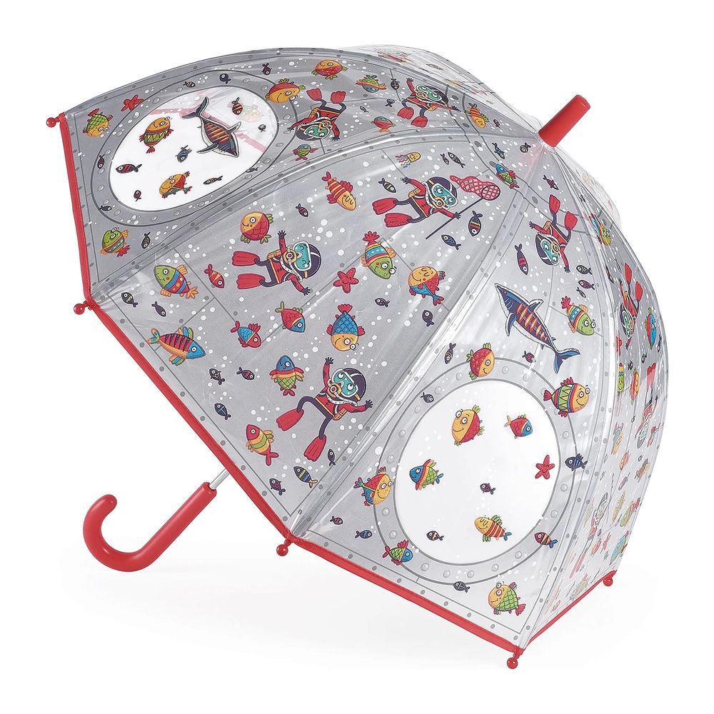 Djeco Regenschirm Unterwasse Sehr schöner und hochwertiger - transparenter Regenschirm mit bunten Motiven - der absolute Hingucker! Das Öffnen und Schließen des Schirmes ist mit der Hand möglich (keine Automatik per Druckknopf). Grösse: Durchmesser 70 x 68 cm.