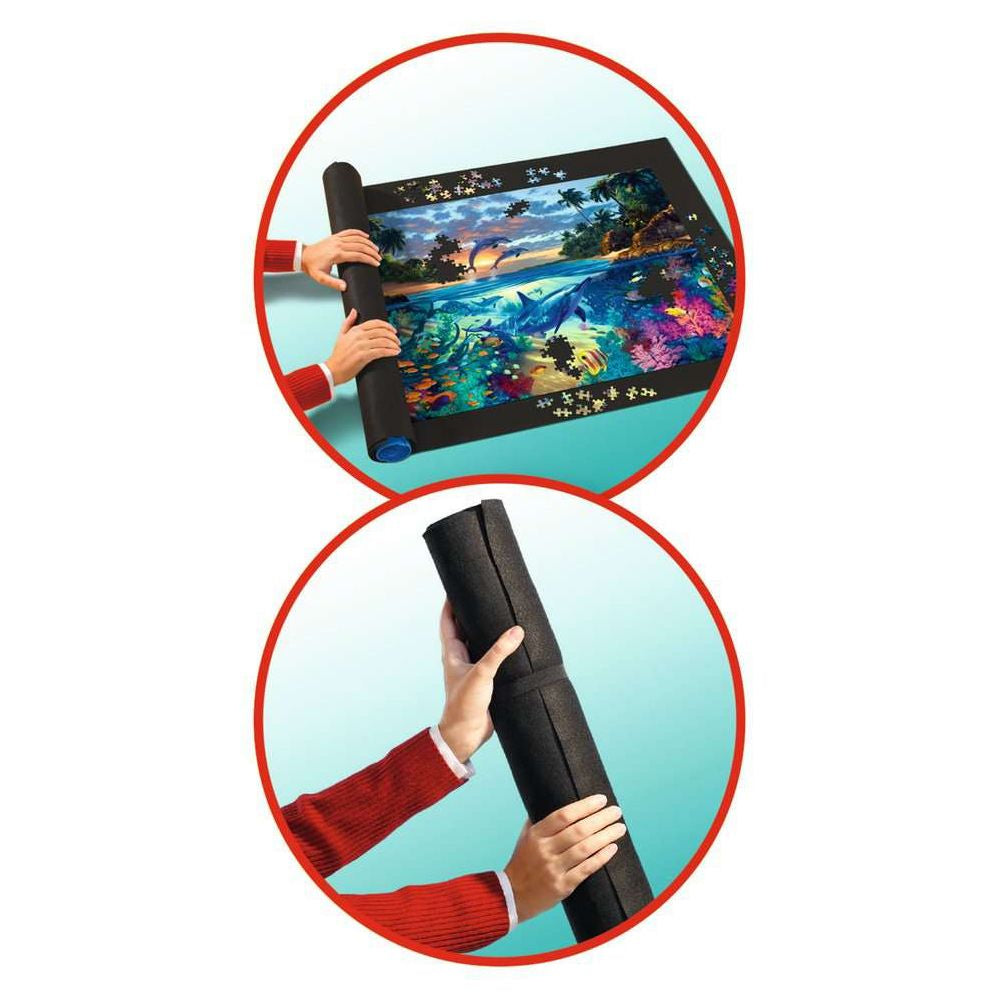 Das praktische Aufbewahrungssystem Puzzle Roll & Go von Ravensburger macht Puzzeln superkomfortabel und vor allem: mobil! Eine rutschfeste Filzmatte dient als Puzzleunterlage, die anschließend samt Puzzle um eine stabile Röhre gewickelt und mit zwei Gummibändern befestigt wird. So können angefangene oder fertige Puzzles mit 300 bis 1500 Teilen platzsparend verstaut und sicher transportiert werden. Für schöne Puzzlestunden zu Hause oder unterwegs. Ravensburger Puzzles bedeuten Puzzlespaß in Premiumqualität. Hochwertige Verarbeitung, moderne Designs sowie eine riesige Auswahl an Motiven begeistern Puzzlefans vom Anfänger bis zum Profi. Mit dem gut durchdachten Puzzle-Zubehör von Ravensburger können Puzzlebegeisterte jetzt so richtig durchstarten: Puzzles sortieren, platzsparend verstauen und transportieren oder fertige Werke fixieren – das praktische Zubehör eröffnet völlig neue Puzzledimensionen! Für ein erstklassiges Puzzleerlebnis zu Hause und unterwegs.
