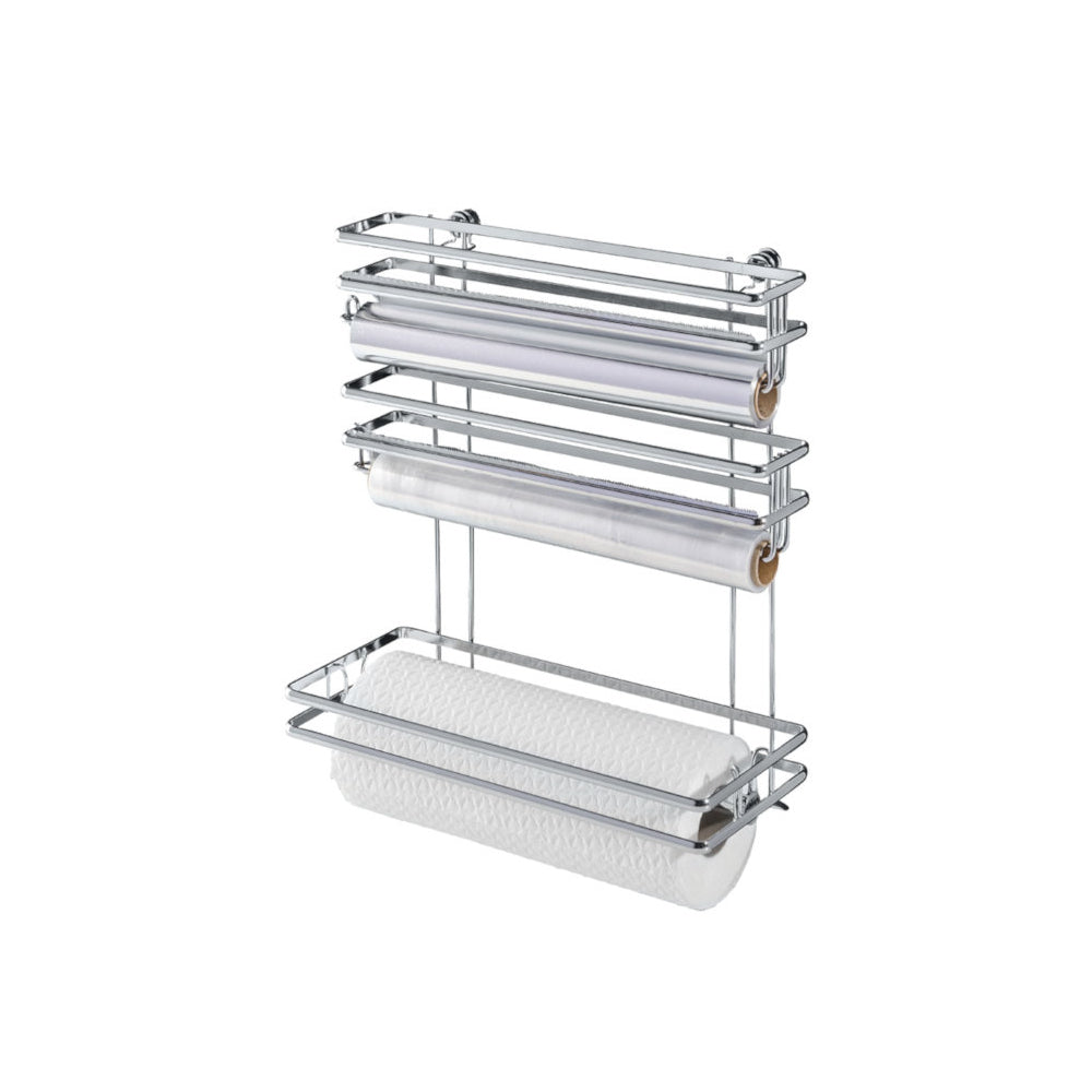 Wenko Rollenhalter Trio Style, silver shiny Für alle gängigen Küchen- und Folienrollen geeignet. Inkl. Schrauben und Dübel. Alternativ auch Befestigung ohne bohren möglich mit Express-Loc®, Vacuum-Loc®, Turbo-Loc® oder Static-Loc®. Siehe Seite 19. Material: Metall verchromt. 32x13x33 cm