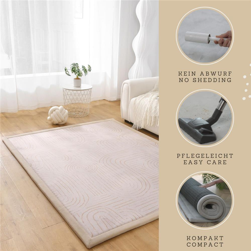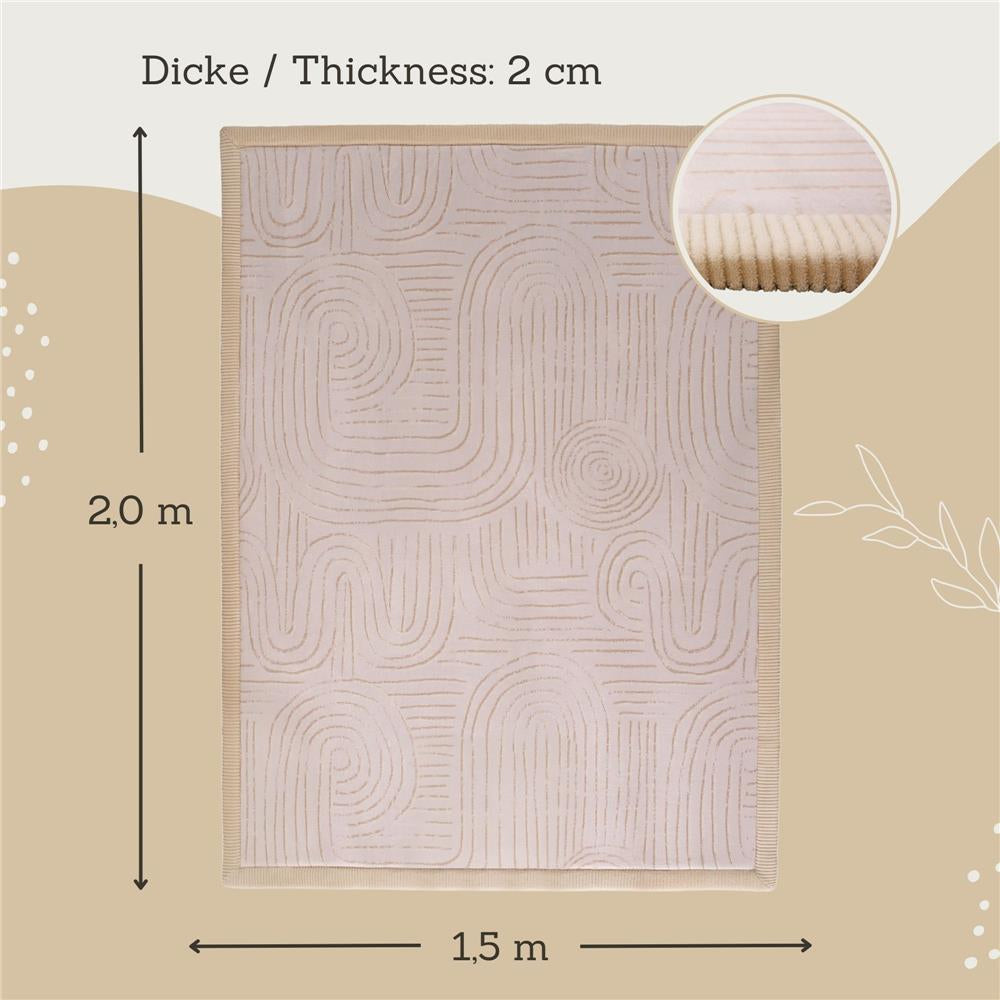 DER WOLKENWEICHE KINDERTEPPICH besteht aus drei Schichten: 1. Korallensamt für den weichsten Hautkontakt, 2. elastischer Memory-Schaum für bequemes Spielen und Krabbeln, 3. rutschfeste Rückseite zum Schutz vor Stössen beim Fallen. Durch die extra Grösse von 200 x 150 x 2 cm ist diese faltbare Spielmatte perfekt zum Krabbeln, Spielen, Yoga und für die Fitness zu Hause. STILLVOLL UND AMÜSANT – diese hochwertige Baby Spieldecke ergänzt Ihre Einrichtung in Ihrem Wohnzimmer oder Kinderzimmer. Die schönen Pastellfarben Grau, Beige oder Rosa fügen sich perfekt in Ihre Inneneinrichtung ein und geben ein Gefühl von Harmonie und Komfort. PREMIUM MEMORY-SCHAUM ist 2 cm dick und nimmt seine Grösse im Vergleich zu billigeren Alternativen schneller wieder an (innerhalb von 1-2 Tagen). Der Kinderteppich wird als Decke gefaltet geliefert und muss im Gegensatz zu vakuumverpackten Teppichen nicht gebügelt werden. Die komprimierte Verpackung spart Platz beim Transport und senkt die Kohlenstoffemissionen. OEKO-TEX 100 STANDARD (Zertifikatsnummer: 10.HCN.80712) – die sichere und geruchslose Kinderspielmatte ist aus BPA-, Phthalat-, Formamid- und PAK-freiem Polyester hergestellt. Diese Krabbelmatte Baby erfüllt alle EU-Produktsicherheitsstandards. PFLEGELEICHT & HYGENISCH – diese Schaumstoff-Spielmatte kann in Sekundenschnelle mit einem Staubsauger oder einem feuchten Tuch und Seife gereinigt werden. Der flauschige Teppich ist bei 30°C handwaschbar und für die Fussbodenheizung geeignet. DESIGNED IN GERMANY