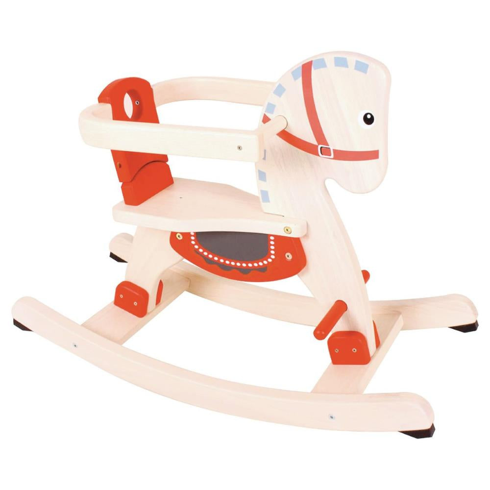 Spielba Schaukelpferd hell lasiert Dieses klassische Schaukelpferd eignet sich für Kinder ab 1 Jahr. Der Sicherheitsbügel kann abgenommen werden, sorgt aber für einen sicheren Ritt. Tolle Verarbeitung. Hergestellt aus massivem und ökologischem Kautschukholz. Sehr stabil.
