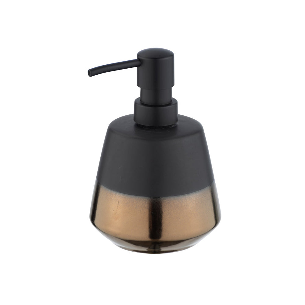 Wenko Seifenspender Brandol Hochwertige Keramik, mit kupferfarbenen Absatz. Mit flexibler Kunststoffabdeckung in schwarz.