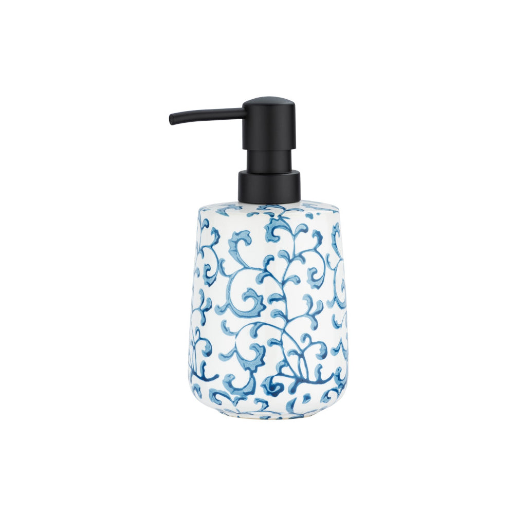 Wenko Seifenspender Mirabello, Keramik Hochwertige Keramik mit Verzierung. Handbemalt. Mit flexibler Kunststoffabdeckung in schwarz.