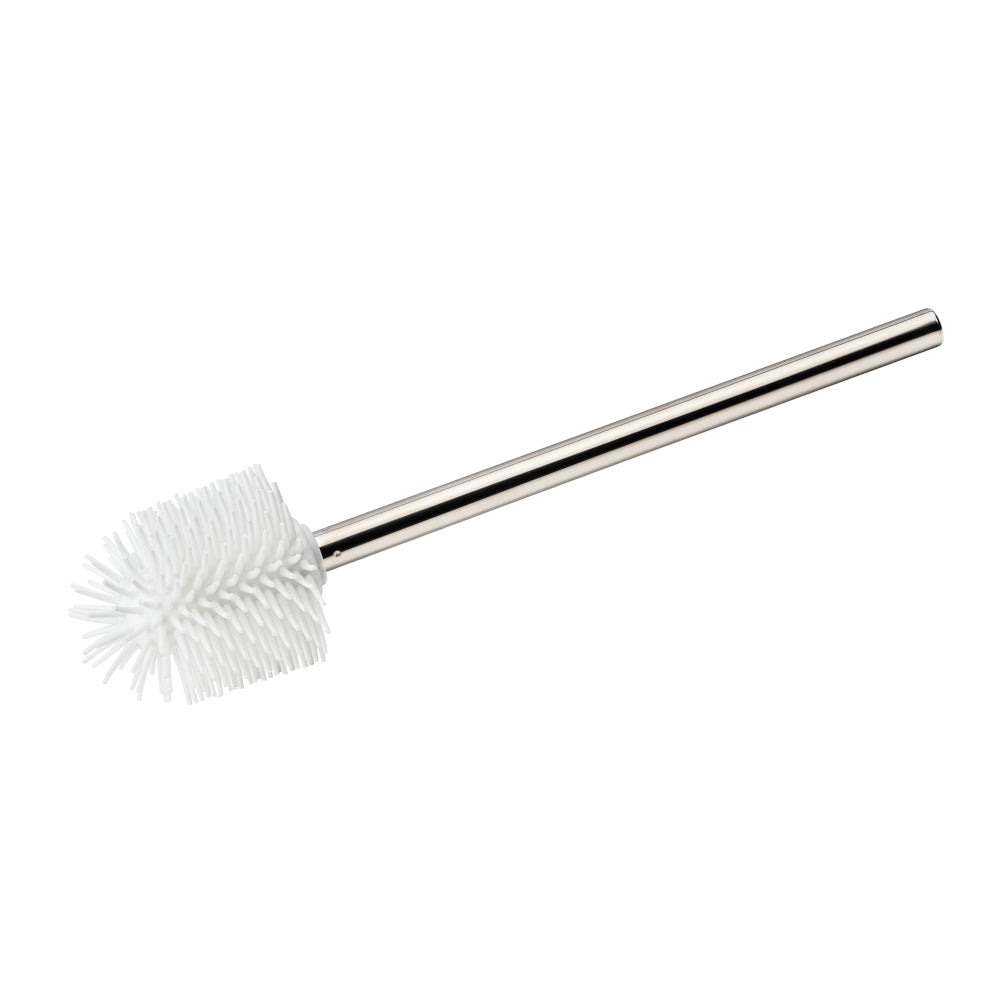 Wenko Silikon Ersatzbürste mit, Edelstahlstiel shiny/white Silikon WC-Bürstenkopf. Eine spezielle Anti-Haft-Wirkung sorgt dafür, dass sich hartnäckige Reste und Toilettenpapier nicht in der Bürste festsetzen, sondern beim Reinigen einfach weggespült werden. Mit wechselbarem Bürstenkopf. ø 7.5 x 35 cm