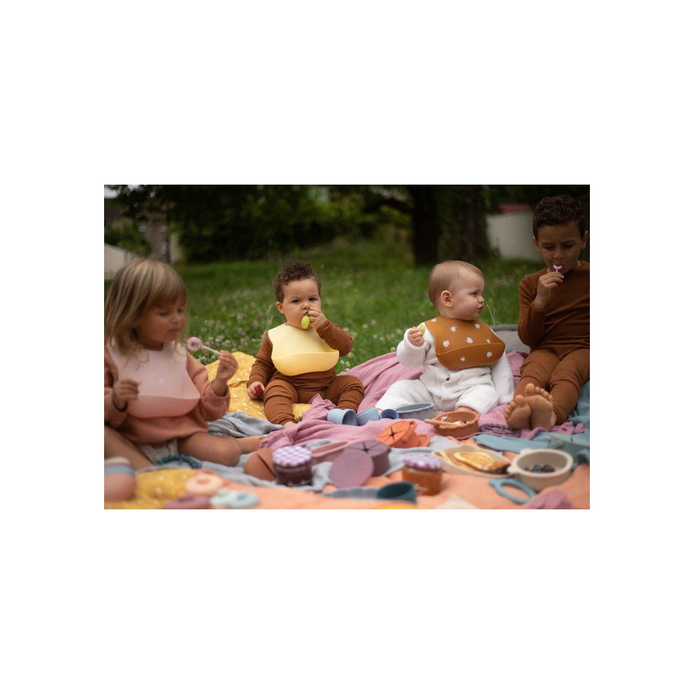 SOINA Silikon Lätzchen, pastel yellow Das Silikonlätzchen ist der Verbündete des Babys beim Essen. Keine Essensflecken mehr auf der Kleidung und auch noch eine Auffangtasche. So geht hier auch im Namen von No Food Waste weniger Essen auf den Boden und somit in den Eimer, sondern wird vom Latz aufgefangen und kann dann direkt aufgepickt und zum Mund geführt werden. Dank der runden, verstellbaren Halslaschen mit verstärkten Knöpfen passt sich das Lätzchen perfekt an die Anatomie des Babys an. Dank seines Materials garantiert das Silikonlätzchen eine einfache Reinigung und bietet Ihrem Baby viel Flexibilität. Es ist umweltfreundlich, schadstoffarm und fettdicht. Es absorbiert kein Wasser oder andere Flüssigkeiten. Ein Accessoire, das Eltern und Babys das Leben leichter macht. Abmessungen : 29 x 23 cm Erhältlich in verschiedenen Farben Reinigung mit Seifenwasser und spülmaschinengeeignet Hergestellt aus lebensmittelechtem Silikon Entspricht den europäischen Normen EN71 BPA- und phthalatfrei Geeignet für Kinder ab 6 Monaten und älter Verpackt in einem Baumwoll-Musselinbeutel Vorsicht Vor dem ersten Gebrauch prüfen und waschen. Lassen Sie das Kind während des Fütterns nicht unbeaufsichtigt.