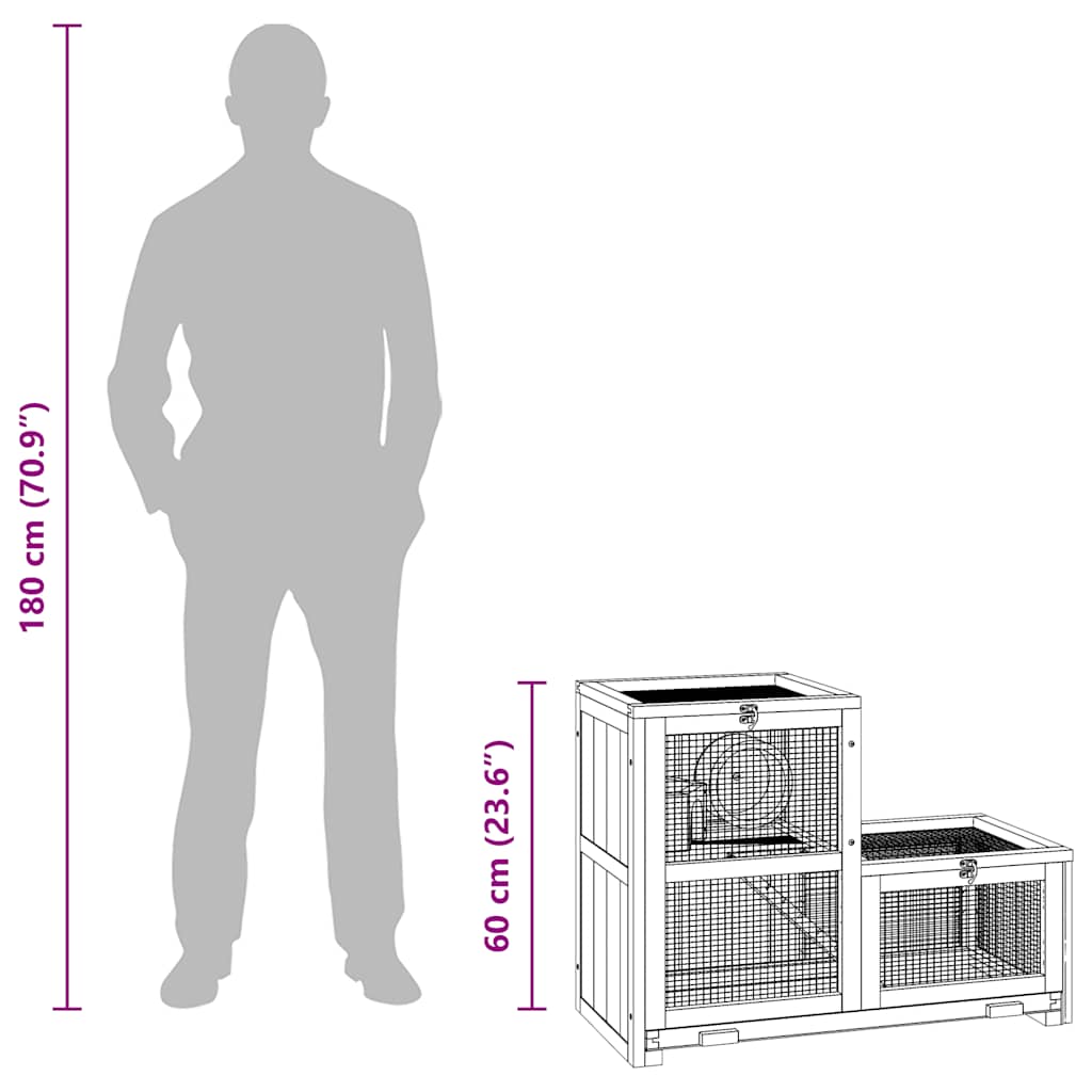 Mit seinen zahlreichen Zubehörteilen bietet dieser Hamsterkäfig aus Holz deinen kleinen Haustieren einen perfekten Platz zum Laufen, Herumtoben und Spielen. Er eignet sich auch für junge Wüstenrennmäuse, Mäuse, Meerschweinchen und ähnliche Kleintiere. Massives Tannenholz: Tannen-Massivholz ist ein wunderschönes Naturmaterial. Tannenholz trocknet nicht aus und verzieht sich nicht, wenn es Feuchtigkeit ausgesetzt wird. Aus Tannen-Massivholz gefertigt, ist dieses Hamsterhaus robust und lässt sich auch einfach reinigen.Käfig mit 2 Etagen: Dieser Kleintierkäfig mit 2 Etagen bietet deinen Haustieren reichlich Platz zum Spielen und Entspannen. Das Laufrad regt sie zur Bewegung an, um ihre Kraft und ihr Wohlbefinden beizubehalten.Mit Drahtgitter: Das Dach lässt sich öffnen und besteht aus Drahtgitter, das für eine gute Belüftung und einen einfachen Zugang sorgt. Darüber hinaus kannst du dank der anderen 3 Seiten aus Drahtgitter deine pelzigen Freunde beim Spielen und Entspannen in ihrem neuen Zuhause beobachten.Einfache Reinigung: Der Kleintierkäfig aus Holz verfügt über eine ausziehbare Wanne, die für eine einfache Reinigung sorgt.
