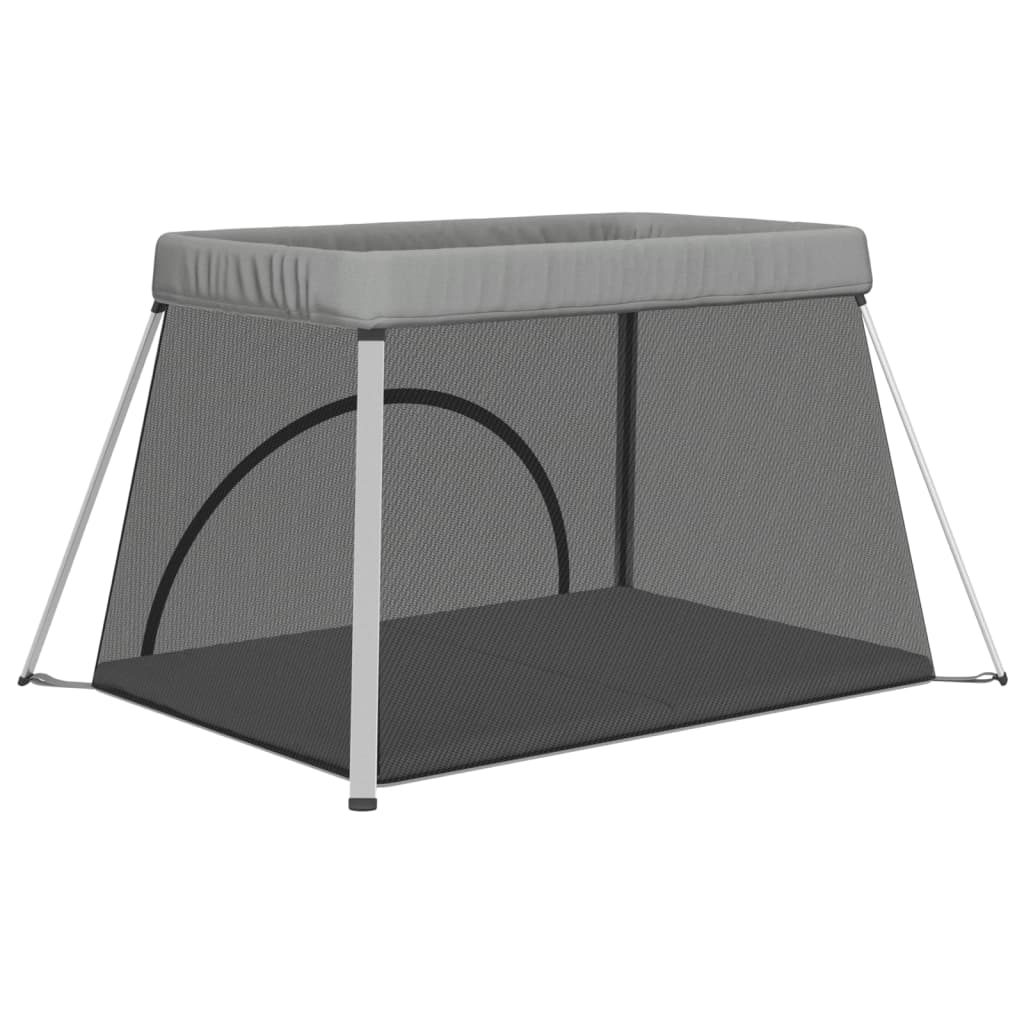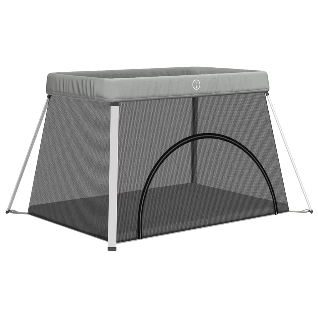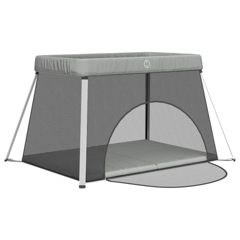 Laufstall mit Matratze Hellgrau Leinenstoff