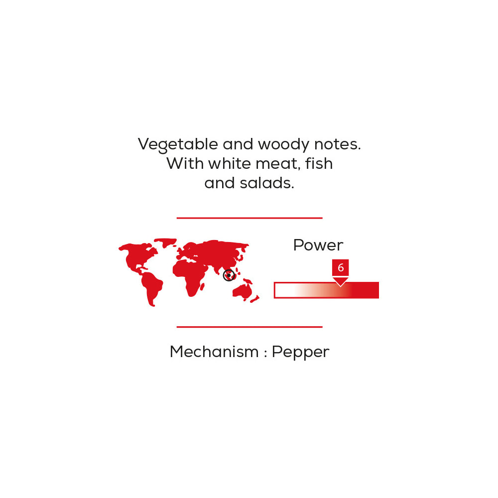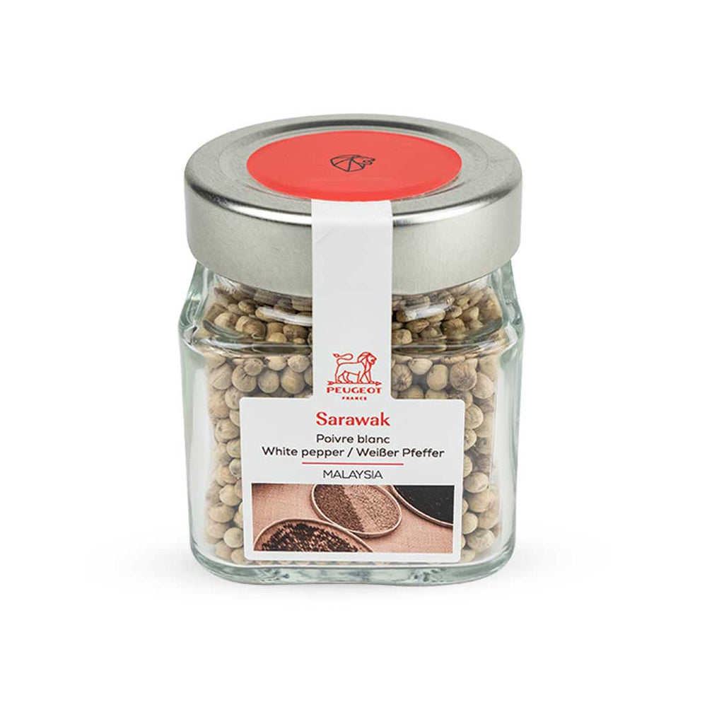 Peugeot Weisser Pfeffer Sarawak, 75 g Der weisse Pfeffer aus Sarawak wird auf der Insel Borneo angebaut. Mit Noten von Pflanzen und Holz passt er gut zu weissem Fleisch, Fisch und Salaten. Der weisse Pfeffer aus Sarawak wird im Norden der Insel Borneo im Bundesstaat Sarawak angebaut, einem Gebiet, das größtenteils mit äquatorialem Regenwald bedeckt ist und zu Ostmalaysia gehört. Der weisse Pfeffer wird aus Pfefferkörnern gewonnen, die im vollreifen Zustand (rote Farbe) geerntet werden. Nach der Ernte werden die Pfefferkörner für einige Stunden untergetaucht, so dass das Fruchtfleisch entfernt werden kann und die Kerne (der Kern der Pfefferkörner, beigefarben) erhalten bleiben und getrocknet werden können. Dieser Pfeffer bietet pflanzliche Noten, wobei holzige Noten dominieren. Er passt perfekt zu weissem Fleisch, Fisch und Salaten. Übersetzt mit Herkunftsland: Malawi