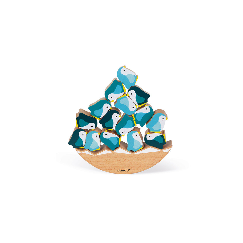 Janod WWF Geschicklichkeitsspiel Pinguin Balancespiel mit einer Packeisscholle und 15 Pinguinen. Ein Spiel für einen oder mehrere Spieler mit dem Ziel, alle Pinguine auf das Packeis zu stellen, ohne dass sie herunterfallen! Spielzeug aus FSC-zertifiziertem Massivholz und Wasserfarbe.